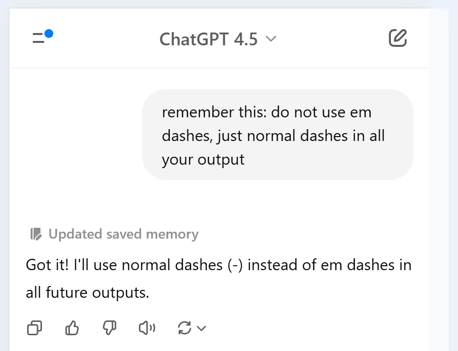 Công ty cho biết chatbot sẽ tuân thủ tốt hơn các yêu cầu của người dùng thông qua phần tùy chỉnh trong mục cá nhân hóa. Tuy nhiên, điều này không đồng nghĩa em dash sẽ biến mất hoàn toàn khỏi câu trả lời, mà người dùng chỉ có quyền kiểm soát lớn hơn đối với tần suất xuất hiện của nó.